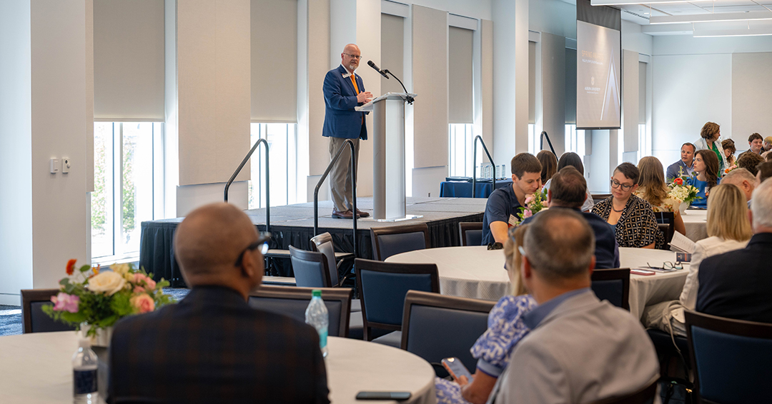 Mario Eden, dean of the Samuel Ginn College of Engineering, speaks during the college’s annual spring awards ceremony in the Brown-Kopel Center on April 10.