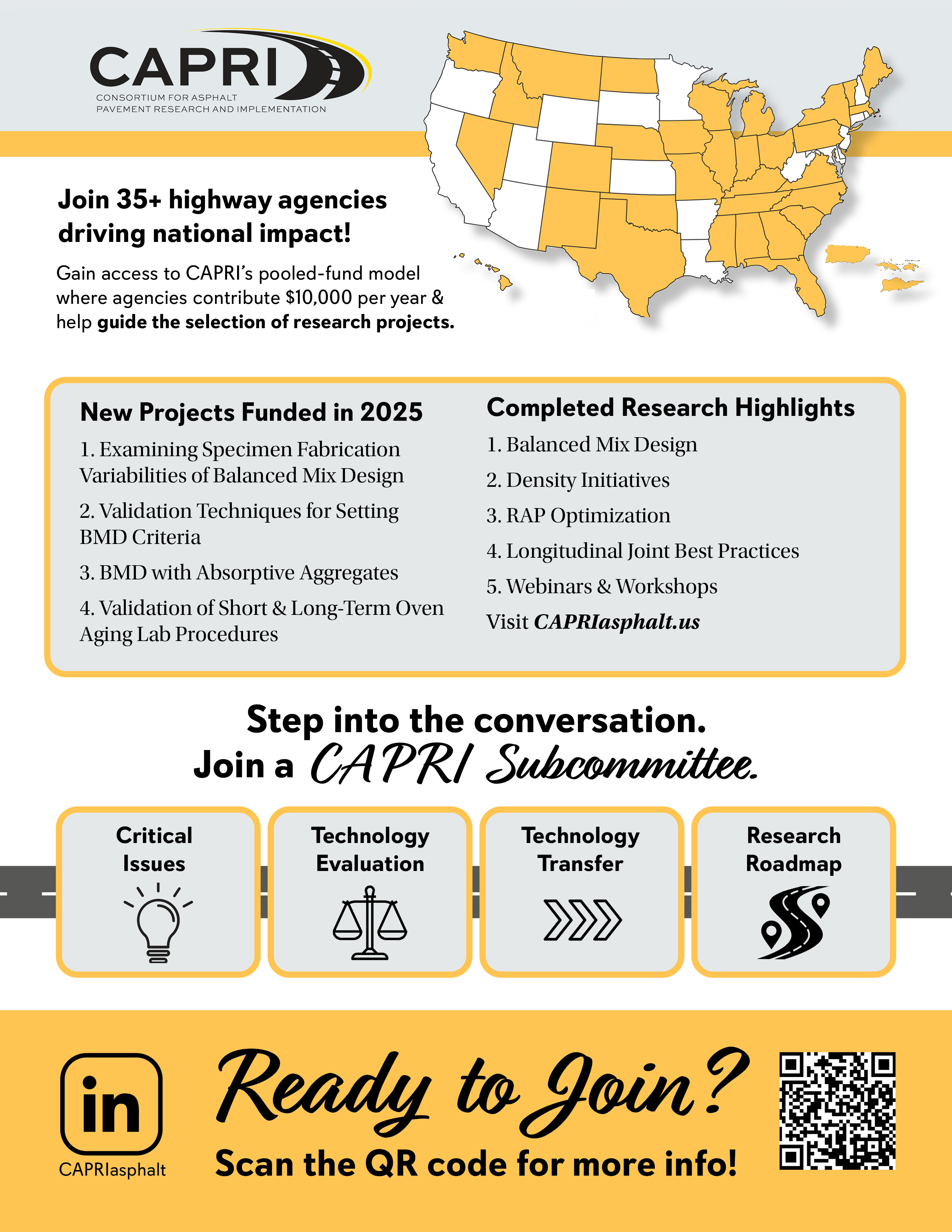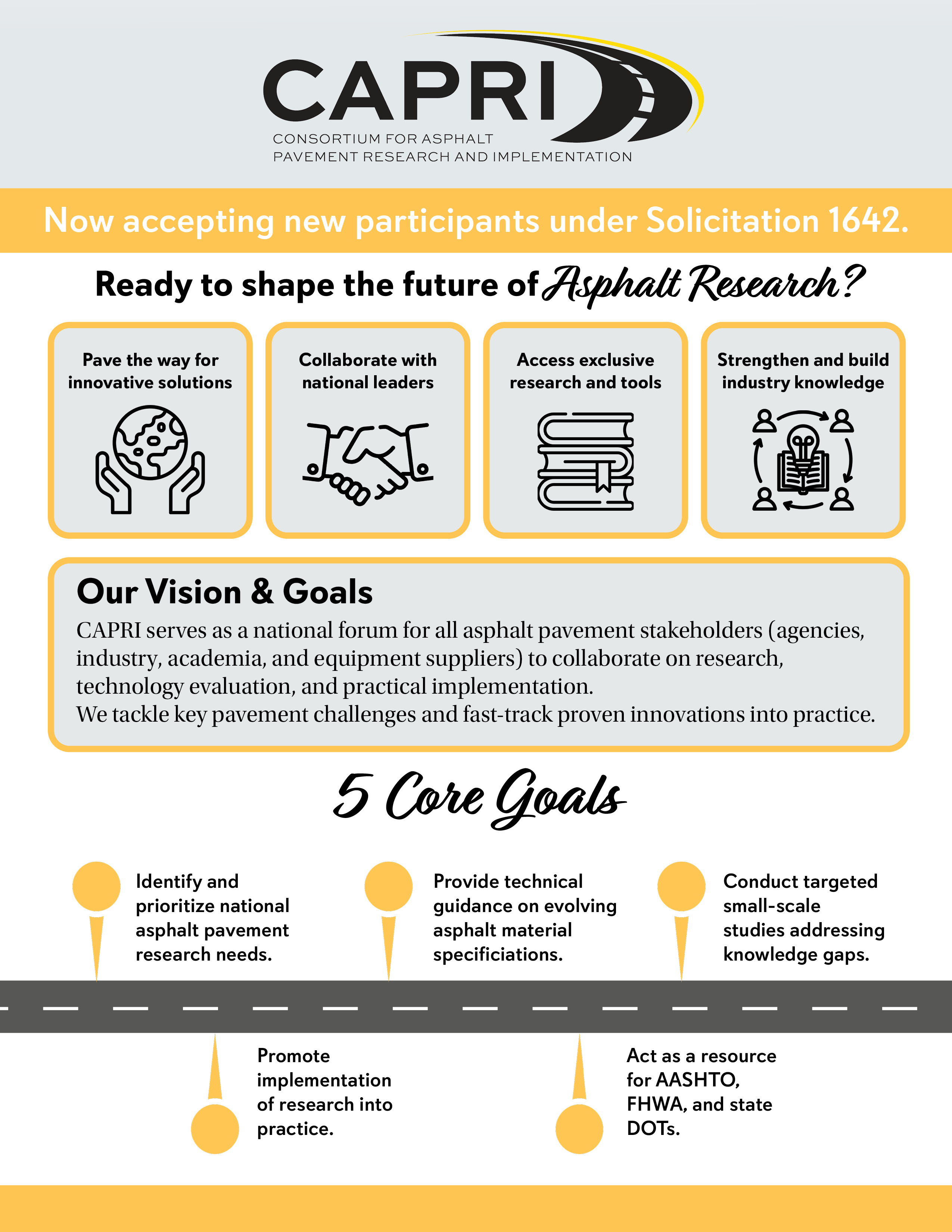 - All other stakeholder organizations in the U.S. including asphalt producers/contractors, asphalt pavement associations, materials suppliers, equipment suppliers, consulting firms, public or private research organizations, and universities.