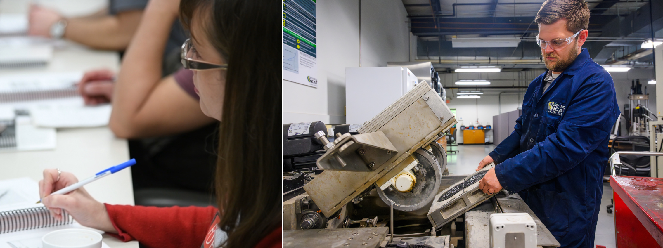 Lab demos include binder and aggregate testing, mix design, and performance tests.