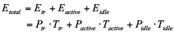 We introduced a model to calculating energy consumption for disk drives in a parallel disk system. [Zong et al., 2007a] The basic power model for this study is a summation of all power states multiplied by the time each power state was active. The states used are start-up, idle, and read/write/seek. Read, write and seek are put together, because they share similar power consumption. Let Ttr be the time required to enter and exit the inactive state. The power consumption of a disk when entering and exiting the inactive state is Ptr. Thus, energy Etr consumed by the disk when it enters and exits the inactive state is expressed as PtrTtr. Similarly, let Tactive and Tidle are the time intervals when the disk is in the active and inactive states, respectively. We denote the energy consumption rates of the disk when it is active and inactive by Pactive and Pidle, respectively. Hence, the energy dissipation Eactive of the disk when it is in the active state can be written as , and the energy Eidle of the disk when it is sitting idle can be expressed as PidleTidle. The total energy consumed by the disk system can be calculated as