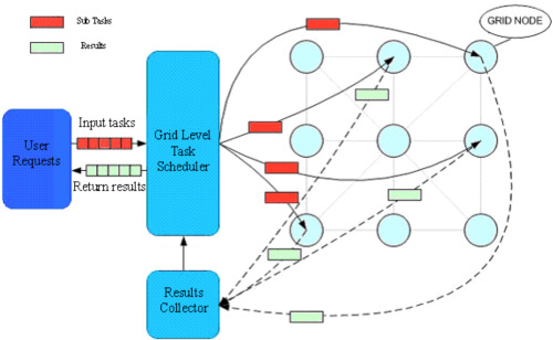 During the process of execution, the results collector will periodically check the randomly returned sub results and transfer these sub results to Grid level scheduler. The scheduler in the framework passes the latest information to all tasks, which can guarantee that the tasks with dependency could immediately be executed once they get the necessary sub results. [Back to Top]