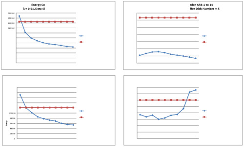 The Figure below shows the energy consumption and average response time of a parallel disk system with DARAW and the same disk system without DARAW. The results indicate that when we increase SRB, more energy can be saved. The results were expected since when the SRB grows, the system can write more requests into data disks with reduced number of power state transitions. However, we also observe that when the SRB equals to one, the energy consumption is even greater than the disk system without DARAW. This interesting tend can be explained as follows. Our parallel disk system has a buffer-disk layer that also consumes energy. If there is insufficient number of requests written into a data disk when a power-state transition occurs, energy conserved cannot offset energy overhead introduced by the buffer disk. When we did the experiment with a trace generated by increasing values of λ, we observe that energy consumptions in both the non-DARAW parallel disk system and the system with DARAW decrease.