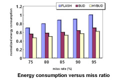 Finally the HYBUD strategy consumes the least energy. When the read request is submitted to the flash memory, they read request will be served immediately if the data disk is in active mode, otherwise, the read request will be written to the flash assuming that these requests will be frequently used. When the flash is full, the dirty data will be flushed to the buffer disks and all the miss requests will be clustered together, which leads to less energy consumption.