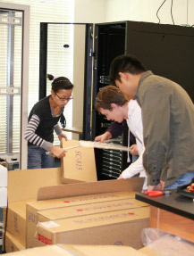 To recruit new undergraduate students, especially women and minorities, to conduct research in the area of computer security, we designed a research program that offers ample opportunity to undergraduate students to do intensive research in information assurance with the PIs. In particular, students and the PIs are brought together to conduct research experiments in the field of secure and energy-efficient storage systems. The photo below shows two undergraduate students - Tsukasa Ogihara and Joshua Lewis - are building a cluster computing system using commodity-off-the-shelf (COTS) hardware components.