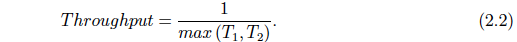 The throughput (see Eq. 2.2) of the two-stage pipelined system is inversely proportional