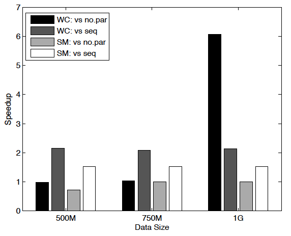 example, in terms of word-count application results, an average 2.4X speedup of time consumption
