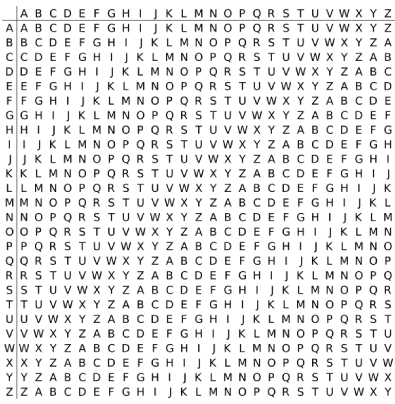 Here is another example for encryption using Vigenere tableau. The person sending the message chooses a keyword and repeats it until it matches the length of the plaintext, for example, the keyword "LEMON":